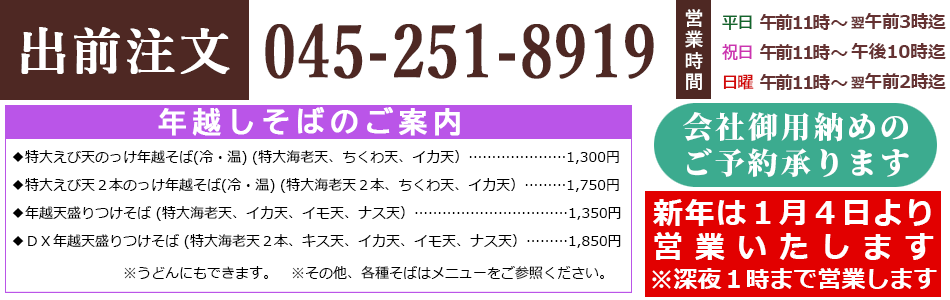新年は 1月4日(日)午前11時から深夜1時まで 営業いたします。